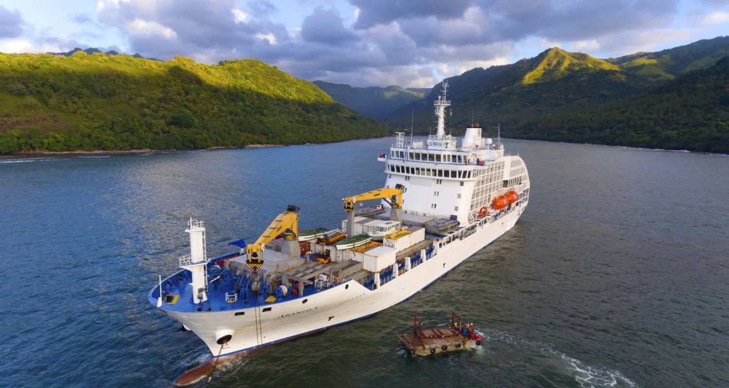 The Aranui 5 is anchored in the harbor of Papeete and awaits you. Please have your Aranui ticket, your passport and a valid credit card ready. After checking into your cabin, your German-speaking tour guide will be waiting to discuss the rest of the day with you and give you a briefing on the mail boat. This is followed by a safety drill before the Aranui 5 slowly leaves the port of Papeete at around 12 noon and sets off for the Austral Islands. Overnight stay on board in your booked cabin category.
