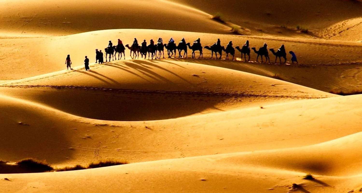 Today you are to say goodbye to society and we are going for the sunlit desert. The first thing we do after breakfast is pack our luggage and head for Merzouga. It's one of the most extended trips, approximately 7 hours of drives, but the change of the sceneries would make us enjoy the travel. En route, we will stop by Ifrane that has a dual European nature and climate, park with lakes and chalets, a ski resort, and getting sufficient snow in winter makes it ‘Morocco’ Switzerland. As we are at Ifrane, we will definitely gaze upon the gigantic cedars by Atlas Mountains and feed the wild monkeys, on the way to Azrou. The monkeys are playing, and they like when the strangers feed them.Lunch stop in Midelt. Also, this route takes us through the canyon of the Zi Cliff and the valley of Ziz River, and as we come to Er-Rashidia we will see the area change into a sand one.
