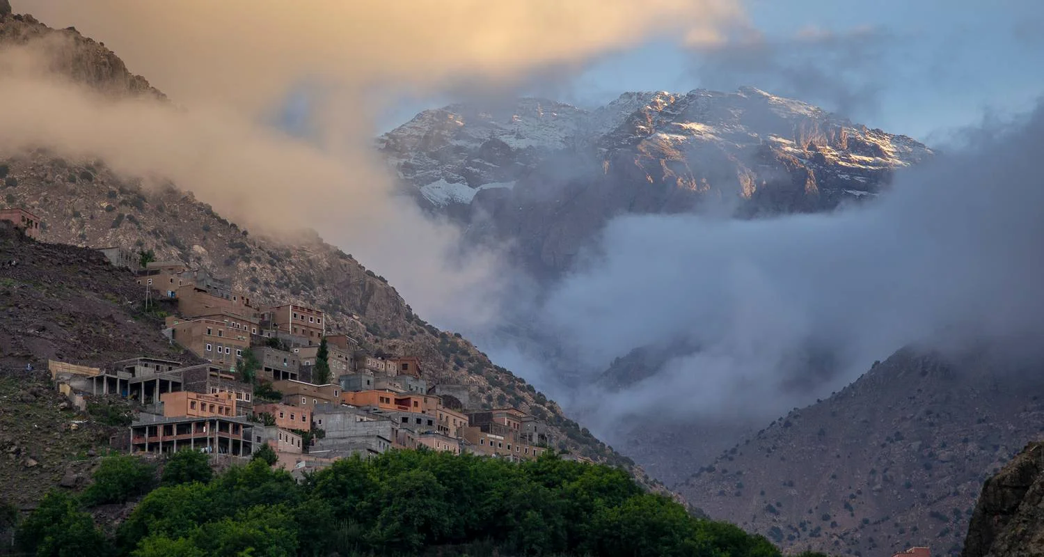 Following your delightful breakfast, the adventure continues with a camel ride, allowing you to take in the stunning views as we approach the mountains. As you travel through the valley, the picturesque scenery and authentic Berber villages will captivate you. The journey then takes us to Imlil, located thousands of meters above sea level. This village, renowned for its trekking opportunities, attracts travelers from around the world, particularly those aiming to summit Jebel Toubkal, the highest peak in North Africa at 4,167 meters.