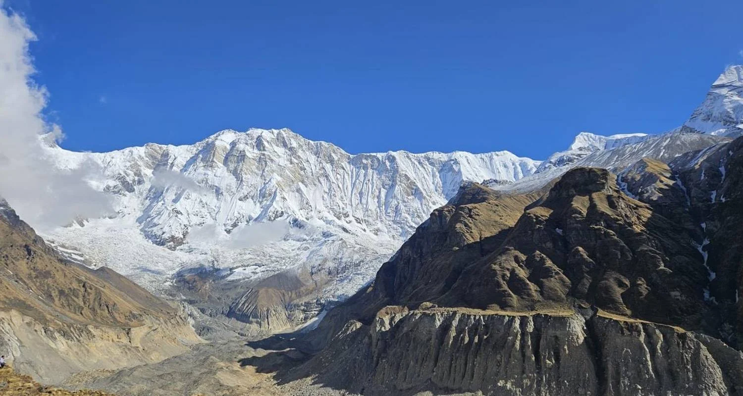 Today’s 5-mile trek from Himalaya to Annapurna Base Camp (ABC) is the highlight of the journey, taking about 6-7 hours. The trail takes you through Deurali and Machapuchare Base Camp (MBC), where views of Annapurna South, Hiunchuli, and Machapuchare (Fish Tail) peak become even more stunning. The final ascent to ABC at 4,210 meters is thrilling, with snow-covered landscapes and breathtaking 360-degree views of the surrounding peaks. This area, also known as the Annapurna Sanctuary, is revered for its beauty and spiritual significance to locals and trekkers alike.