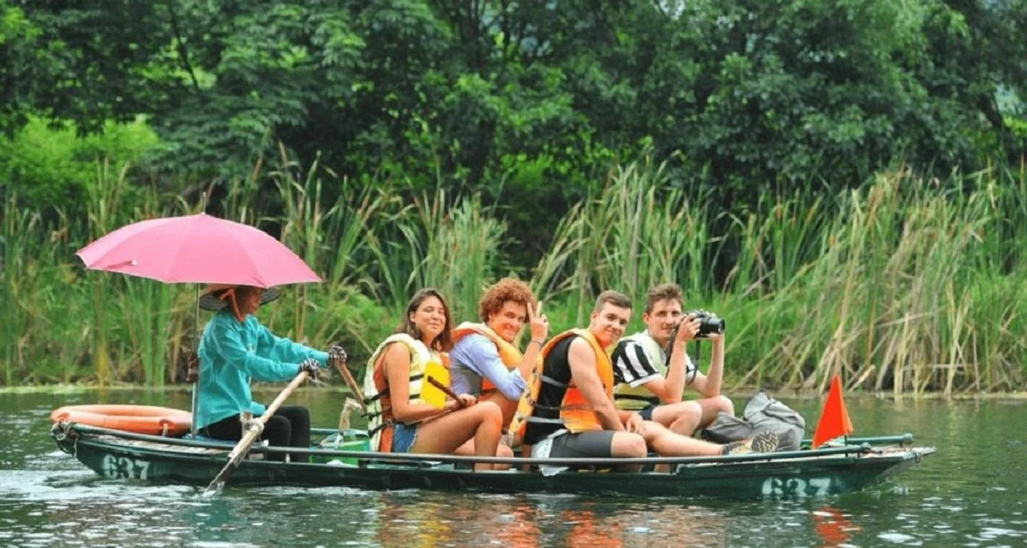 13h00: Visit Tam Cocby 1.5-hour bamboo boat.  You will be surprised by the charming beauty here with paddy fields, river, water, cloud, sky, and a stunning cave system during the boat trip. All make a masterpiece thatthe Vietnamese people called “Ha Long Bay on land”