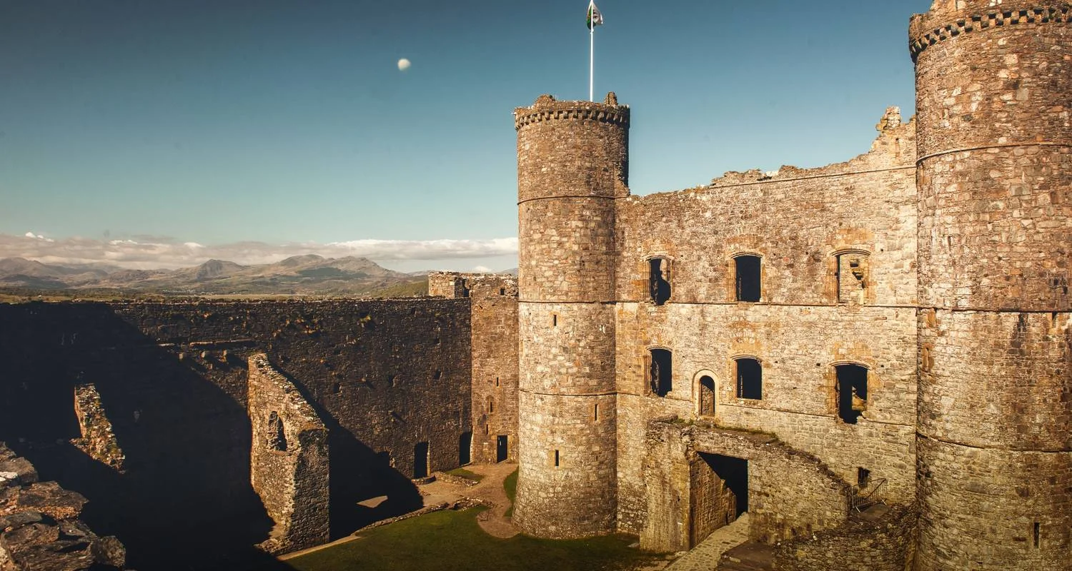 Later you travel to Harlech Castle. Built by King Edward I during his conquest of Wales nearly 800 years ago, this mighty fortress still stands overlooking the peaks of Snowdonia and the sea.
