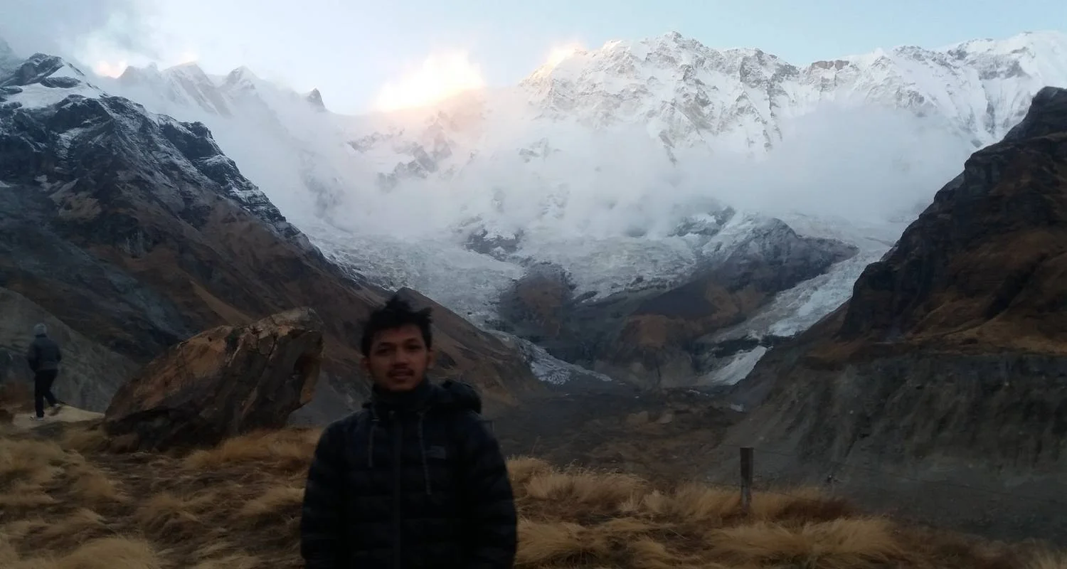 Wake up early to witness a magical sunrise at Annapurna Base Camp (4,130m). As the first light of dawn touches the peaks, you'll be treated to a breathtaking spectacle with the surrounding mountains bathed in hues of gold and pink. This is a perfect moment to capture stunning photographs of the Annapurna Massif, including Annapurna I, Annapurna South, Machhapuchhre (Fishtail), Hiunchuli, and other surrounding peaks.