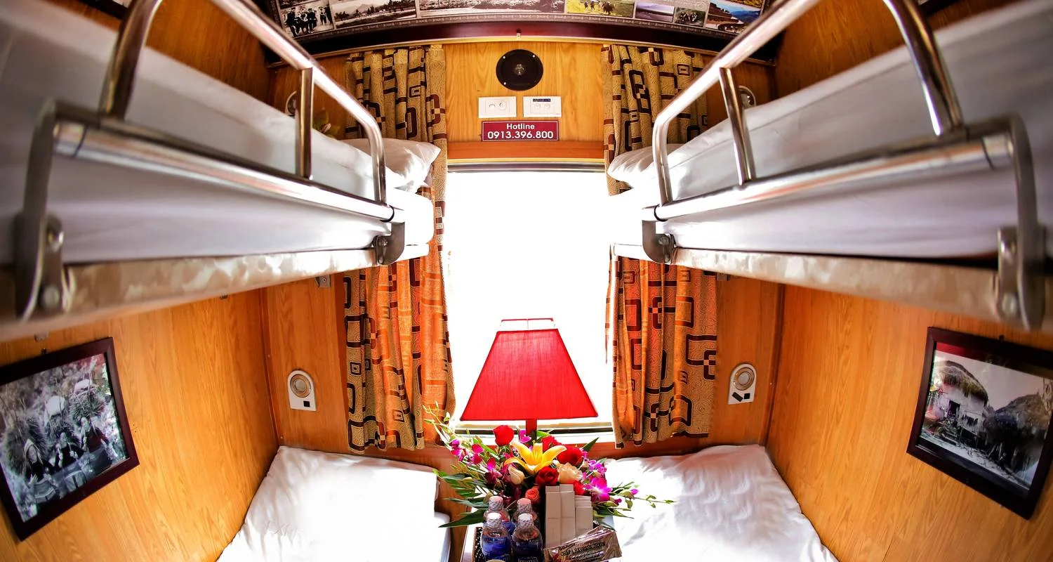 Overnight train basing on first class 4 berth cabin with air-con from Hanoi station to Lao Cai station